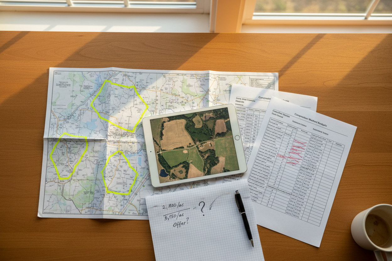 Use per-acre numbers as a sanity check, not a pricing strategy. The real work is understanding what makes this specific parcel valuable to a specific type of buyer.